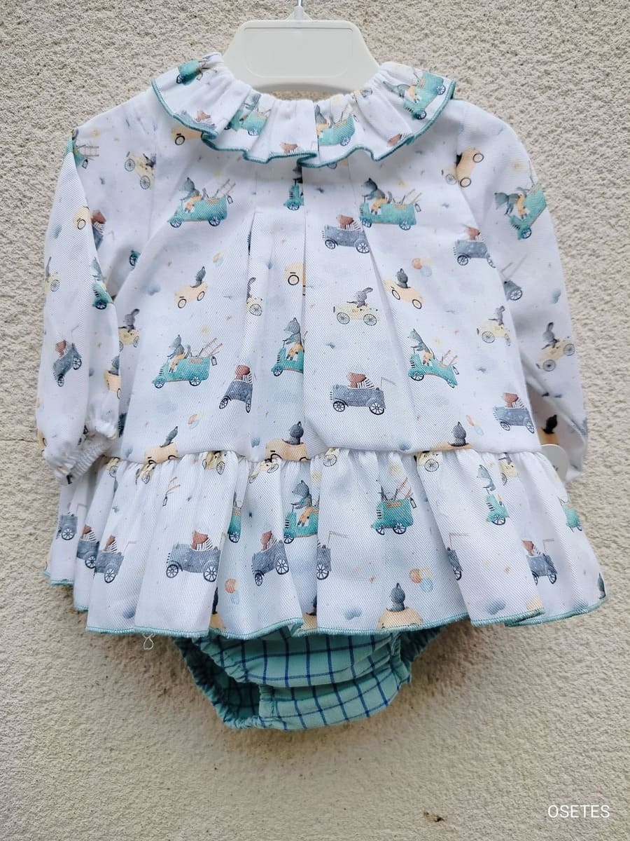 Dulce y coqueto, este jesusito de algodón 100% está diseñado para aportar comodidad y estilo a las más pequeñas. Su tejido blanco con estampado de animalitos en coches transmite alegría y ternura, perfecto para la temporada.
