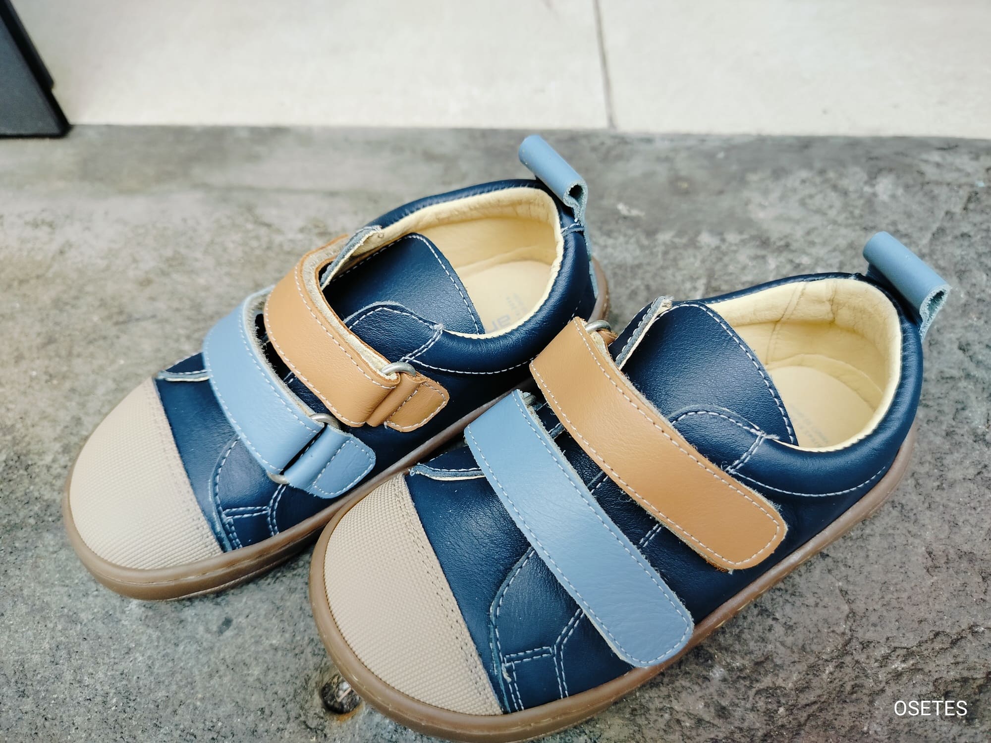 Playeros respetuosos de Andanines en tonos azul marino con detalles en beige y camel. Con cierre de velcro doble que facilita el calce y da autonomía a los peques, suela fina y flexible que permite el movimiento natural del pie y puntera reforzada para aguantar su ritmo diario. Un calzado cómodo, ligero y resistente, ideal para acompañar cada paso con estilo y seguridad.