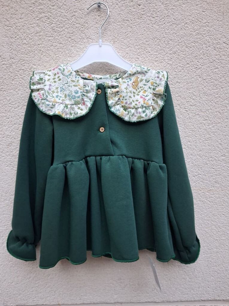 Sudadera verde afelpada perfecta para el frío, con un diseño único de cuello.